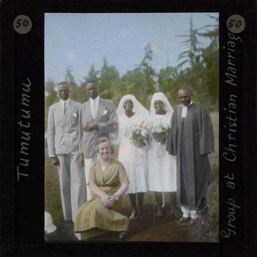 | Keywords: Christian Marriage, Tumutumu, Kenya, ca.1905-ca.1940 (imp-cswc-GB-237-CSWC47-LS7-050).jpg en <br> Christian Marriage Tumutumu Kenya ca 1905-ca 1940 Group at Christian Marriage Tumutumu Photograph of a Christian Marriage in the missionary station of Tumutumu In the photograph are two women dressed in white two men dressed in suits and a pastor A missionary is sitting at the front of the group ; This belongs to a series of Church of Scotland Foreign Missions Committee lantern slides relating to the Kikuyu Mission in Kenya which was set up by Church of Scotland missionaries Hospitals were established by Scottish missionaries in Kikuyu in 1908 in Tumutumu in 1909 and in Chogoria in 1922 The missionaries also introduced the Presbyterian Church to the area The Kikuyu are Kenya's most populous ethnic group Photographer Unknown Filename imp-cswc-GB-237-CSWC47-LS7-050 tif Coverage date 1905/1940 Part of collection International Mission Photography Archive ca 1860-ca 1960 Type images Part of subcollection Photographs from the Centre for the Study of World Christianity University of Edinburgh U K ca 1900-ca 1940s Repository name Centre for the Study of World Christianity Archival file impaunpub_Volume7/1656 url Repository address The University of Edinburgh School of Divinity New College Mound Place Edinburgh EH1 2LX United Kingdom Geographic subject country Kenya Format aacr2 1 lantern slide 8 x 8 cm Geographic subject continent Africa Rights Contact the repository for details Part of series Kenya Mission LS7 Repository email divinity-CSWC ed ac uk Subject lcsh Keyword Marriage; Rites and ceremonies; Religious gatherings Date created 1905/1940 Publisher of the digital version University of Southern California Libraries Subject aat genre group portraits Format aat lantern slides Legacy record ID impa-m68763 Access conditions http //www ed ac uk/schools-departments/divinity/research/centres/world-christianity/collections-resources File GB 237 CSWC47/LS7/50 1905/1940 author http //digitallibrary usc edu/cdm/ref/collection/p15799coll123/id/64776 PD-old-70-1923 Magic lantern images Images from USC Digital Library uploaded by Fæ International Mission Photography Archive ca 1860-ca 1960 |