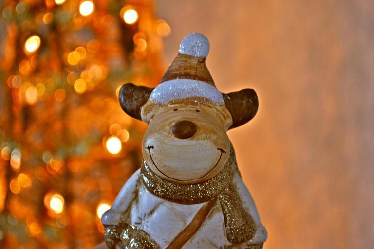 Keywords: christmas end of year christmas decorations lighting decoration christmas tree lights figurine moose smile golden atmosphere cosiness cute funny