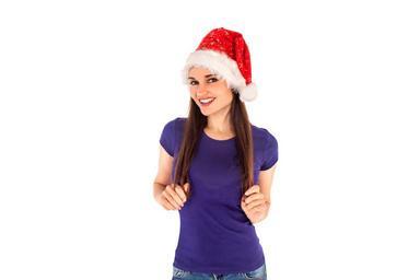Keywords: christmas new year's eve holiday postcard background stand-alone white girl smile hair woman cap white background european beautiful people santa claus