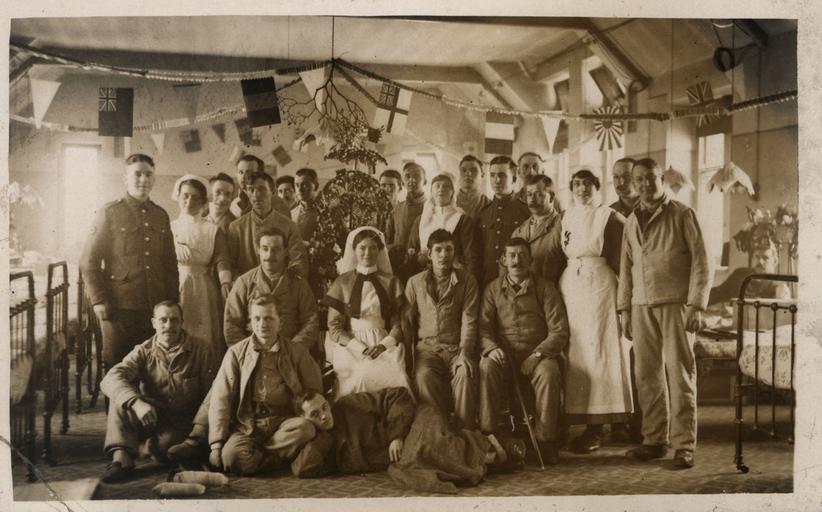 | Keywords: hospital nurses first world war firstworldwar christmas decorations soldiers flags moustache clean shaven cleanshaven uniforms nationality flags nationalityflags cosy warm hopeful black and white blackandwhite comradeship ward 26 ward26 sheffield healing 3rd northern general hospital 3rdnortherngeneralhospital sharing celebration monochrome black and white This photograph shows a view of patients and staff of Ward 26, 3rd Northern General Hospital, Sheffield. The photograph was taken at some time in December 1916 and documents the Christmas Celebrations for the patients.  Reference: DF.BGS-4-6-2  This set offers a rare and intimate glimpse in to the Life of a Wounded Soldier recovering from the horrors of World War One.  This particular set of photographs is taken from a collection held at Tyne & Wear Archives capturing the every day lives of the nurses and patients at the 3rd Northern General Hospital, Sheffield and Longshaw Lodge Convalescent Home for Wounded Soldiers, Grindleford, near Sheffield. The photographs were taken between August 1916 and June 1917.  A blog about this fascinating collection can been viewed here on the Tyne & Wear Archives & Museums website.  (Copyright) We're happy for you to share these digital images within the spirit of The Commons. Please cite 'Tyne & Wear Archives & Museums' when reusing. Certain restrictions on high quality reproductions and commercial use of the original physical version apply though; if you're unsure please email archives@twmuseums.org.uk  This photograph shows a view of patients and staff of Ward 26, 3rd Northern General Hospital, Sheffield. The photograph was taken at some time in December 1916 and documents the Christmas Celebrations for the patients.  Reference: DF.BGS-4-6-2  This set offers a rare and intimate glimpse in to the Life of a Wounded Soldier recovering from the horrors of World War One.  This particular set of photographs is taken from a collection held at Tyne & Wear Archives capturing the every day lives of the nurses and patients at the 3rd Northern General Hospital, Sheffield and Longshaw Lodge Convalescent Home for Wounded Soldiers, Grindleford, near Sheffield. The photographs were taken between August 1916 and June 1917.  A blog about this fascinating collection can been viewed here on the Tyne & Wear Archives & Museums website.  (Copyright) We're happy for you to share these digital images within the spirit of The Commons. Please cite 'Tyne & Wear Archives & Museums' when reusing. Certain restrictions on high quality reproductions and commercial use of the original physical version apply though; if you're unsure please email archives@twmuseums.org.uk |