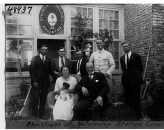 | Keywords: marshall field marshallfield expedition for vertebrate paleontology expeditionforvertebratepaleontology elmer riggs elmerriggs george sternberg georgesternberg john abbott johnabbott jose strucco josestrucco c. harold riggs charoldriggs geology fossil collecting fossilcollecting paleontology expedition fossil mammals fossilmammals cenozoic argentina south america southamerica fossil blackandwhite monochrome black and white Christmas party, meteorology station. Group of hosts at the Argentine Meteorological station at Colonia Sarmiento. Includes unidentified woman holding a small dog. Brick wall, sign above door. 1923. Name of Expedition: Captain Marshall Field Expedition for Vertebrate Paleontology Participants: Elmer S. Riggs, George F. Sternberg, John B. Abbott, Jose Strucco, C. Harold Riggs Expedition Start Date: 1922 Expedition End Date: 1925 Purpose or Aims: Geology Fossil Mammals that were probably distinct from other Northern Hemisphere Cenozoic fossils Location: South America, Argentina Original material: album print Digital Identifier: CSGEO48937 Learn more about The Field Museum's Library Photo Archives. Christmas party, meteorology station. Group of hosts at the Argentine Meteorological station at Colonia Sarmiento. Includes unidentified woman holding a small dog. Brick wall, sign above door. 1923. Name of Expedition: Captain Marshall Field Expedition for Vertebrate Paleontology Participants: Elmer S. Riggs, George F. Sternberg, John B. Abbott, Jose Strucco, C. Harold Riggs Expedition Start Date: 1922 Expedition End Date: 1925 Purpose or Aims: Geology Fossil Mammals that were probably distinct from other Northern Hemisphere Cenozoic fossils Location: South America, Argentina Original material: album print Digital Identifier: CSGEO48937 Learn more about The Field Museum's Library Photo Archives. |