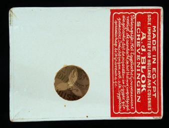 | Keywords: Christo Cassimis blue cigarettes box with lady depicted, back, AJ BLok, Scheveningen.JPG Very old packaging of a product that is not produced and not sold any more own 2014-04-13 09 46 06 Alf van Beem CC-Zero Trademarked Christo Cassimis cigarettes |
