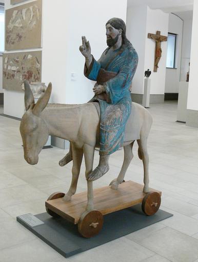 | Keywords: Christus als Eselsreiter Niederbayern.jpg Artwork Christ anonymous LangSwitch Esel August Weißer modern Donkey August Weißer modern de Christus ale Eseltreiber mitgeführt bei Prozessionen am Palmsonntag en Christ on the Back of a Donkey used for processions on Palm Sunday Christ late other date century 12 ; de Esel moderne Ergänzung en donkey is a modern addition poplar de neuere Fassung en new colouring Bode-Museum Skulpturensammlung Object history ProvenanceEvent 1904 gift J Rosenbaum Accession number Inv 2766f Place of creation en Christ Lower Bavaria de Esel aus einer Kirche bei Landshut en donkey from a church in Landshut own Andreas Praefcke 2007 <gallery>Bassa baviera palmesel fine del XII sec JPG</gallery> Sculptures of Palmesel 1100 Bode Gothic sculpture in the Bode-Museum Palmesel Photos by User AndreasPraefcke |