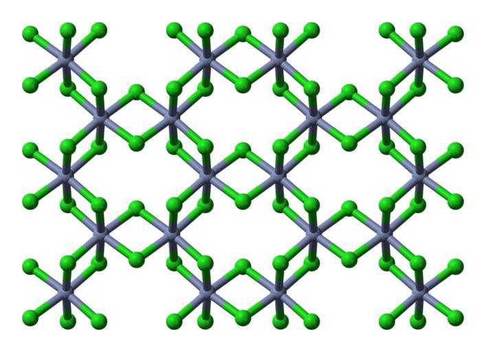 | Keywords: Chromium(III)-chloride-sheet-from-monoclinic-xtal-3D-balls.png Ball-and-stick model of part of a CrCl<sub>3</sub> sheet that could extend to infinity in two dimensions as found in the crystal structure of chromium III chloride CrCl<sub>3</sub> X-ray crystallographic data from http //dx doi org/10 1063/1 1725428 J Chem Phys 1964 40 1958-1967 Model constructed in http //www crystalmaker com/ CrystalMaker 8 1 Image generated in http //accelrys com/products/discovery-studio/visualization/discovery-studio-visualizer html Accelrys DS Visualizer Own 2009-02-21 Ben Mills Benjah-bmm27 Images by Ben Mills Ball-and-stick models Chromium III chloride Crystal structures of chlorides |
