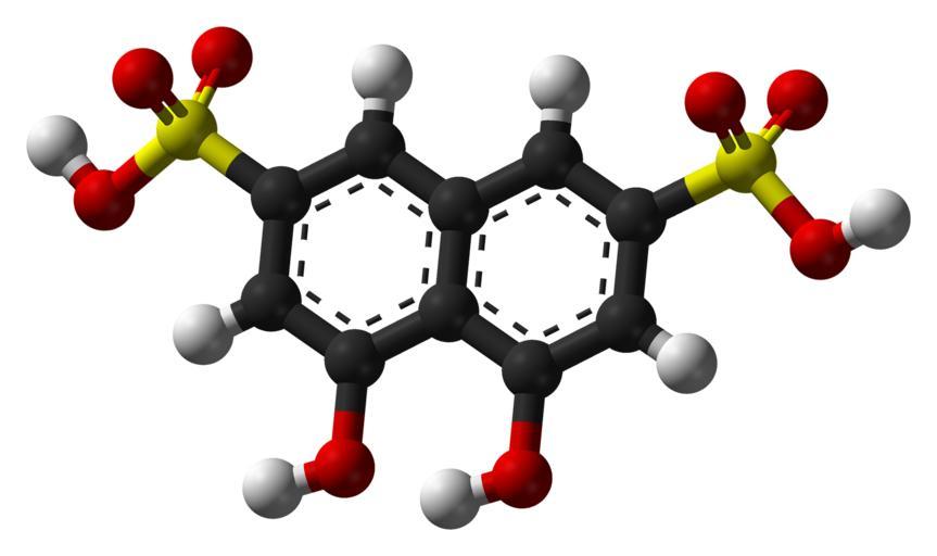 | Keywords: Chromotropic-acid-3D-balls.png Ball-and-stick model of the chromotropic acid molecule Derived from File Hydroquinone-3D-balls png and File Sulfuric-acid-3D-balls png 2010-07-19 Jynto and Ben Mills Naphthalene sulfonic acids Ball-and-stick models 1-naphthols Images by Jynto |