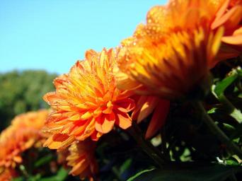 Keywords: chrysanthemum flower dew asteraceae orange sky