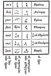 | Keywords: ChrysanthosOktoechosBaseis.png en The disposition of the eight modes main and medial signatures of the Byzantine Octoechos and their basis tones in the diapason system according to Chrysanthos of Madytos and the New Method Neume Notation since 1814 el Τῶν εἰρημένων κτὼ ἤχων αἱ βάσεις ἤγουν τὰ Ἴσα ἑκάστου αὐτῶν ὅταν ζητῆται νὰ φανερωθῶσι καὶ ἡ σῳζομένη ἐν αὐτοῖς τάξις ὸ τοῦ ξέος ἐ ὶ τὸ βαρὺ καὶ αἱ μαρτυρίαι αἵ τινες φανερόνουσι τοὺς ἤχους καὶ γράφονται ρὸ τῶν μελῶν καὶ αἱ μαρτυρίαι τῶν φθόγγων τῆς μελῳδίας αἱ τινες γράφονται ερὶ τὰ μέσα αὐτῆς εἶναι δυνατὸν νὰ ἐκφρασθῶσι μὲ τὸν τρό ον τὸν ὁ οῖον αριστᾷ ὁ ἑξῆς ίναξ Chrysanthos 1832 Θεωρητικὸν μεγὰ τῆς ουσικῆς Triest Michele Weis 168 Platonykiss annotation 2012-09-06 PD-Old PD-US-unpublished Chrysanthos of Madytos |