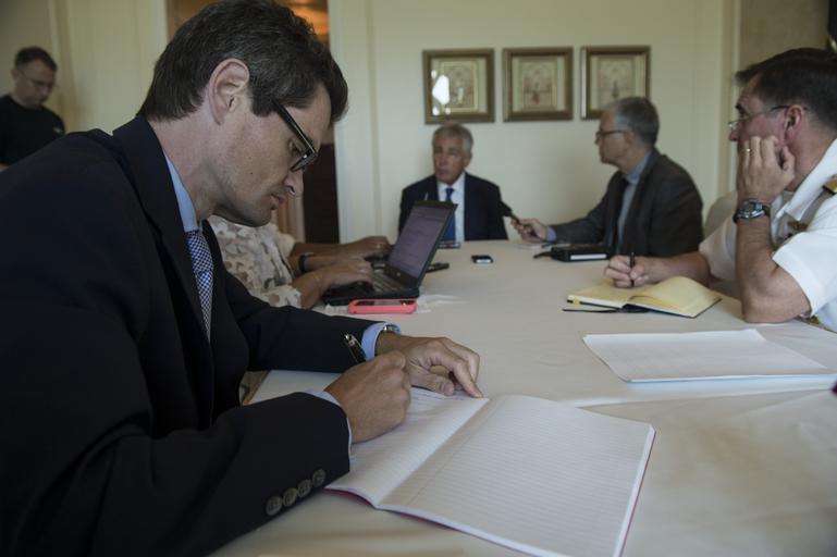 | Keywords: Chuck Hagel briefs members of the press in New Delhi 4.jpg New Delhi India Aug 8 2014 -- Secretary of Defense Chuck Hagel briefs members of the press in a hotel room in New Delhi India August 8 2014 DoD photo by Petty Officer 2nd Class Sean Hurt/Released https //www flickr com/photos/secdef/14672428070/ 140808-N-AF077-157 2014-08-08 05 58 https //www flickr com/people/68842444 N03 Ash Carter PD-USGov Secretary of Defense https //flickr com/photos/68842444 N03/14672428070 2015-12-11 09 53 32 United States Government Work Chuck Hagel in India 2014 in New Delhi |