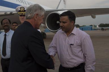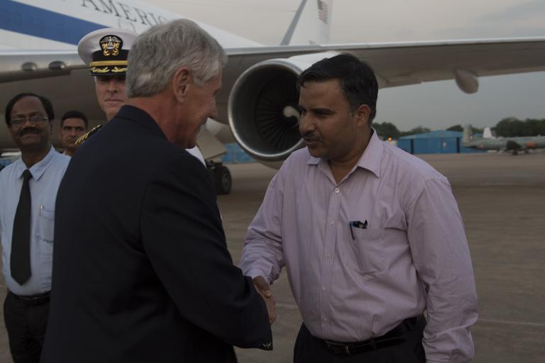 Keywords: Chuck Hagel greeted by officials at IGI Airport 6.jpg New Delhi India Aug 7 2014 -- Secretary of Defense Chuck Hagel is greeted by senior U S and Indian Defense officials at Indira Gandhi International Airport in New Delhi India August 7 2014 DoD photo by Petty Officer 2nd Class Sean Hurt/Released https //www flickr com/photos/secdef/14669700879/ 140807-N-AF077-252 2014-08-07 09 40 https //www flickr com/people/68842444 N03 Ash Carter PD-USGov Secretary of Defense https //flickr com/photos/68842444 N03/14669700879 2015-12-11 09 50 39 United States Government Work Chuck Hagel in India 2014 at Indira Gandhi International Airport |