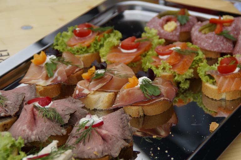 Keywords: chunks sandwiches eat banquet party offer food delicious edible bread ham plate festival festivity snack reception