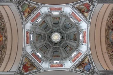 Keywords: church building architecture dome places of interest dom monument salzburg austria view of the dome stucco elements stucco façade stucco imposing baroque cathedral salzburg cathedral
