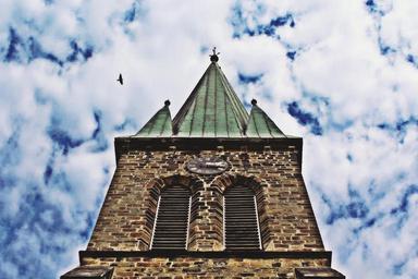Keywords: church clouds sky bird steeple mood blue tower spire summer dramatic religion atmosphere roof clock time believe christianity spiritual rest god spirituality christian cross architecture building jesus historically facade window hdr
