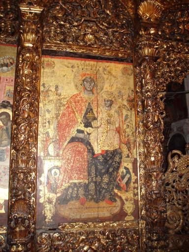 | Keywords: Church icon Berat, Albania.JPG an icon of the Virgin Mary and the Child Jesus in an Orthodox church in Berati Albania located inside the castle own taken by myself 2006-08 User Terfili Berat Castle Albanian Orthodox Church Theotokos Panachranta Iconostases in Albania |