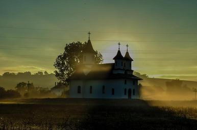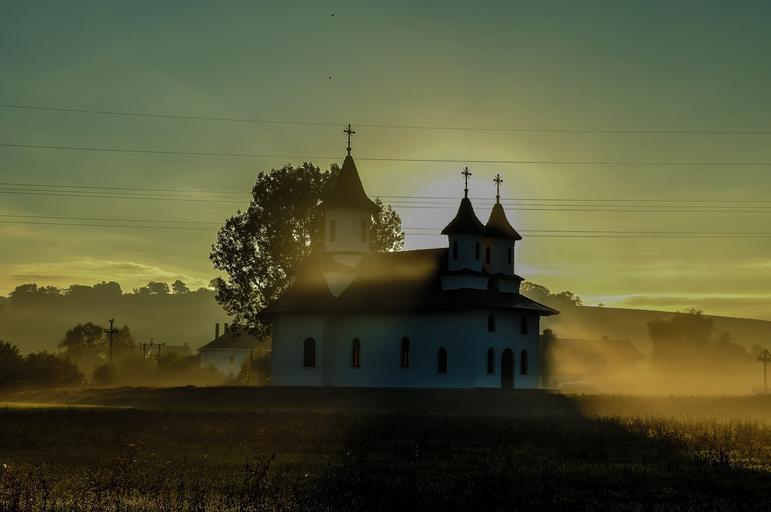 Keywords: church landscape sunrise sky architecture building summer panorama fog mist view outdoor clouds beautiful