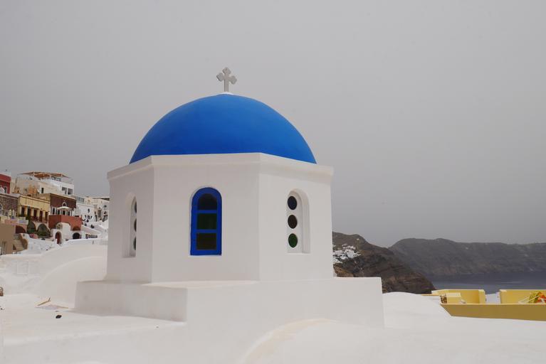 Keywords: church religion faith orthodox santorini greek island dome landscape