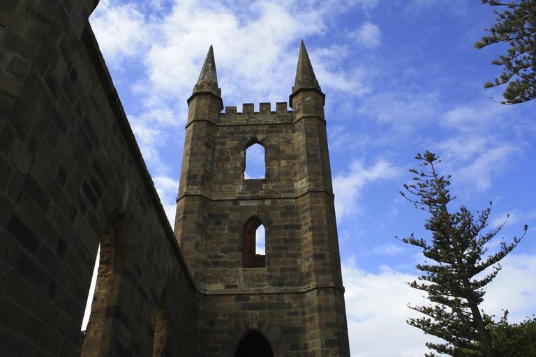 Keywords: church ruins tasmania australia old sky cathedral clouds