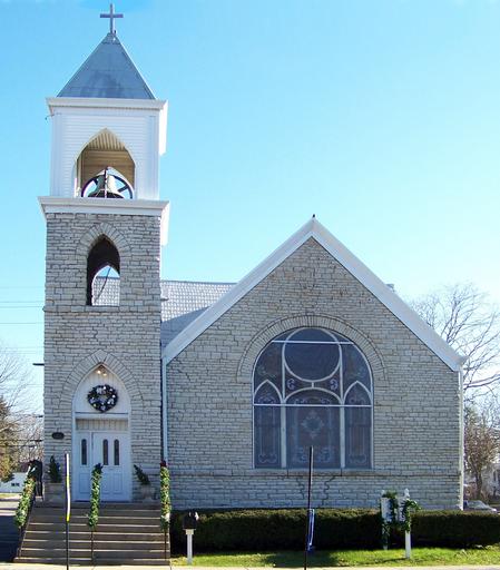 Keywords: church town village christmas xmas decorations cross steeple bell belfry stained glass window