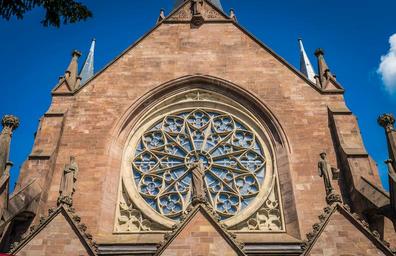 Keywords: church window gothic dom historically house of worship architecture brick gothic facade religion karlsruhe places of interest