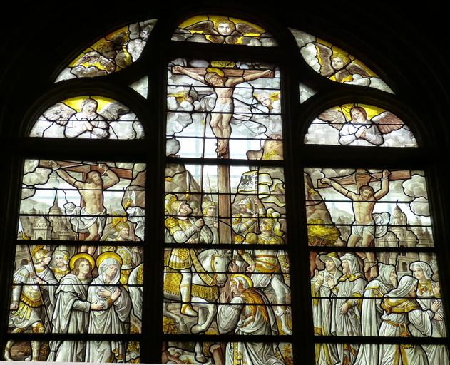 Keywords: church window window church stained glass glass old window faith passion crucifixion cross suffering good friday historically jesus christ france old town reiter angel