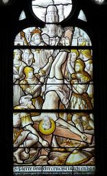 Keywords: church window window church stained glass glass old window faith passion crucifixion cross suffering good friday historically jesus christ descent from the cross mourning death france