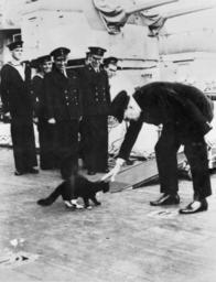 Keywords: black and white blackandwhite cats australian war memorial blackandwhite monochrome black and white ID no : 00957 Photographer: unknown Place: at sea, on board HMS Prince of Wales British Prime Minister, Mr. Winston Churchill, photographing in the act of patting the bushy tailed, black cat mascot of HMS Prince of Wales. Churchill was at this time en route to meet with US President Roosevelt. Rights info : no known copyright restrictions This photograph is from the Australian War Memorial's collection www.awm.gov.au Persistent URL : www.awm.gov.au/collection/009957/ ID no : 00957 Photographer: unknown Place: at sea, on board HMS Prince of Wales British Prime Minister, Mr. Winston Churchill, photographing in the act of patting the bushy tailed, black cat mascot of HMS Prince of Wales. Churchill was at this time en route to meet with US President Roosevelt. Rights info : no known copyright restrictions This photograph is from the Australian War Memorial's collection www.awm.gov.au Persistent URL : www.awm.gov.au/collection/009957/ |