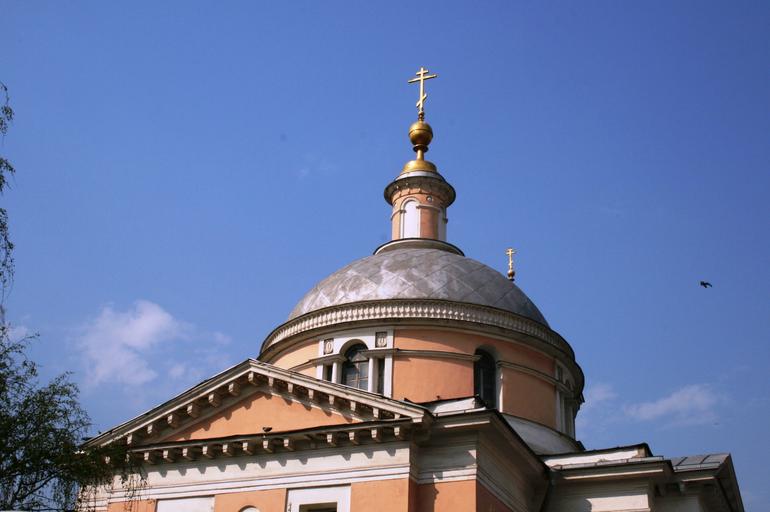 Keywords: churh building architecture neo-classical religion salmon and white metal dome blue sky tower