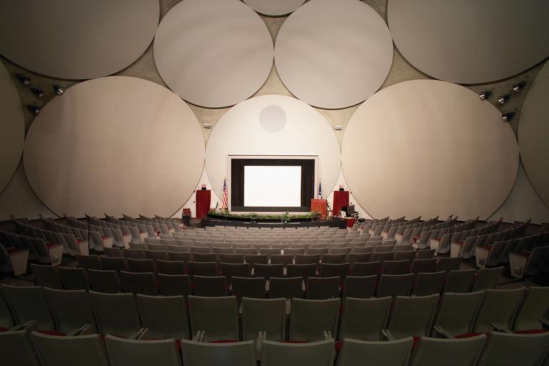 Keywords: cia langley virginia auditorium interior seating stage architecture lighting design spacious