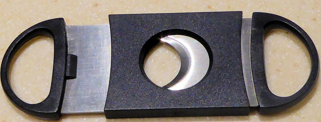 Keywords: cigar cutter stainless steel blades black plastic casing