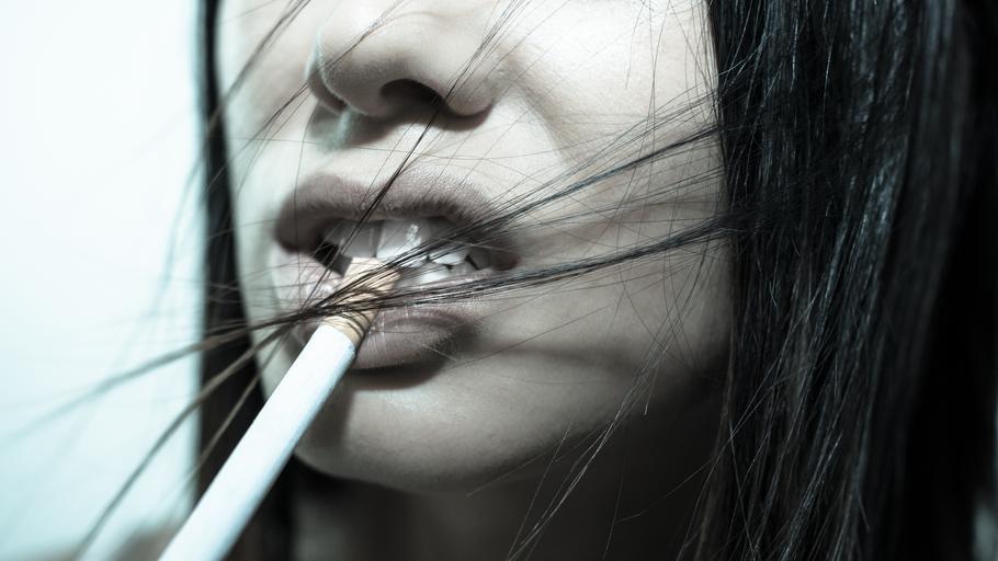 Keywords: cigarette girl woman face lips teeth mouth hair people