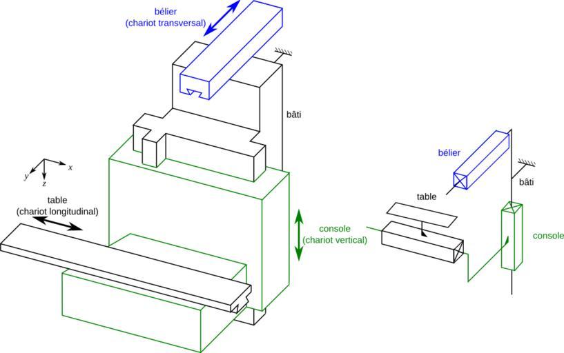 | Keywords: Cinematique fraiseuse conventionnelle tete belier.svg en Kinematics of a milling machine the movement of the piece relative to the tool is made by three translations fr Cinématique d'une fraiseuse conventionnelle le mouvement de la pièce par rapport à l'outil est réalisé par trois translations own Cdang 2010-09-02 inkscape Milling machines Trajectories ISO 3952 kinematic diagrams | ||||