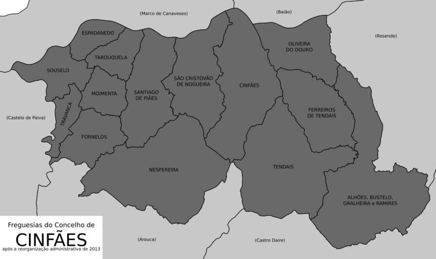| Keywords: Cinfães freguesias 2013.svg pt Freguesias do concelho de Cinfães Fontes Diário da República Reorganização administrativa do território das freguesias Lei n º 11-A/2013 de 28 de janeiro Direcção-Geral do Território Carta Administrativa Oficial de Portugal CAOP versão 2013 Continente http //www dgterritorio pt/ficheiros/cadastro/caop/caop_download/caop_2013_0/caop2013cont_zip_2 en Civil parishes in the municipality of Cinfães Portugal Sources Diário da República Administrative reorganization of the civil parishes' territory Law n 11-A/2013 from 28th January Direcção-Geral do Território Official Administrative Chart of Portugal CAOP version 2013 Mainland http //www dgterritorio pt/ficheiros/cadastro/caop/caop_download/caop_2013_0/caop2013cont_zip_2 2014-04-21 16 51 04 own Gazilion cc-zero Uploaded with UploadWizard Cinfães SVG maps of freguesias in Portugal |