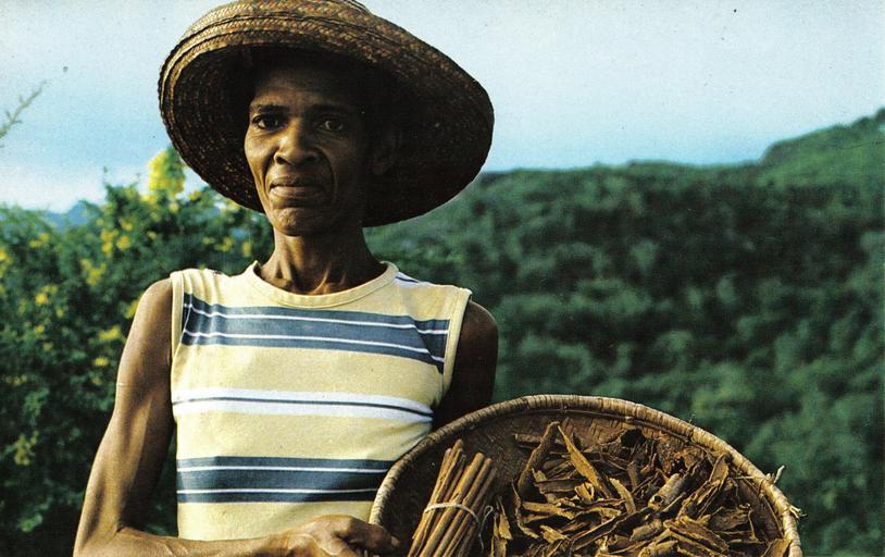 | Keywords: Cinnamon quill maker Seychelles.jpg Cinnamon quill-maker displays her wares a tied up boundle of quills and a sample of scrapped cinnamon bark Scanned from the photo album Maxime Fayon Seychelles Photo Eden Victoria Seychelles 1977 early 1970s Photography by Dino Sassi - Marcel Fayon Photo Eden LTD Public domain according to the law of the Seychelles PD-Seychelles Culture of the Seychelles People of the Seychelles Economy of the Seychelles Cinnamomum verum Quills Cinnamon spice Cinnamon sticks People wearing straw hats |