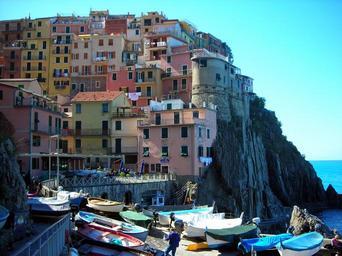 Keywords: cinque terre colorful city italy coast boats mediterranean azure