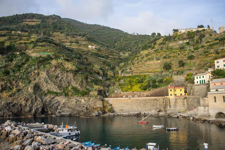 Keywords: cinque terre italy nature terraces europe liguria mediterranean coast italian tourism coastal boat architecture village water travel sky sunny