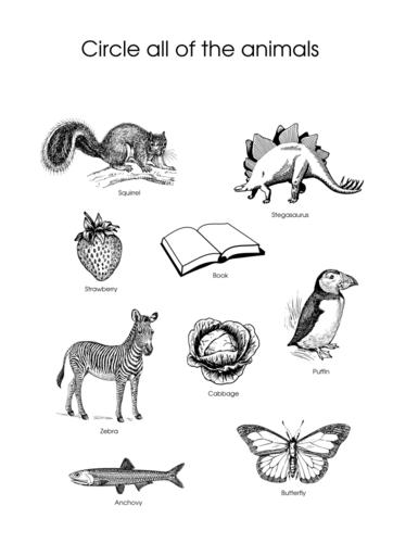 | Keywords: Circle all of the animals 2.svg en Circle all of the animals 2 2016-09-02 All images used from the public domain Squirrel PSF png 16 l Stegosaurus PSF jpg 16 l Strawberry PSF jpg 16 l Cabbage PSF jpg 16 l Zebra PSF png 16 l Puffin PSF png 16 l Butterfly PSF jpg 16 l Anchovy PSF png 16 l Mvolz other versions cc-zero Printables Worksheets |