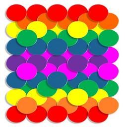 Keywords: circles 3d rainbow spectrum dots layers overlays decorative background backdrop fun colorful red orange yellow green indigo violet blue purple pink spheres shapes balls bright vivid vibrant round geometric globe decoration groups