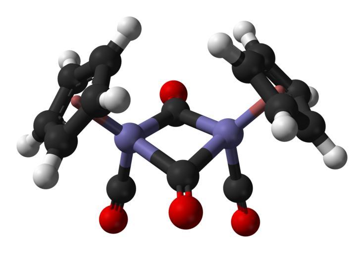 Keywords: Cis-cyclopentadienyliron-dicarbonyl-dimer-from-xtal-1970-3D-balls.png Ball-and-stick model of the cis isomer of the cyclopentadienyliron dicarbonyl dimer C<sub>14</sub>H<sub>10</sub>Fe<sub>2</sub>O<sub>4</sub> AKA Cp<sub>2</sub>Fe<sub>2</sub> CO <sub>4</sub> or Fp<sub>2</sub> Colour code 393939 Carbon C grey-black FFFFFF Hydrogen H white 817BC6 Iron Fe purple-grey-blue F00000 Oxygen O red Structure determined by X-ray crystallography and reported in http //dx doi org/10 1039/j19700003068 J Chem Soc A 1970 3068 “3074 CPFECO10 Model manipulated in http //www crystalmaker com/ CrystalMaker 8 7 Image generated in http //accelrys com/products/discovery-studio/visualization/discovery-studio-visualizer html Accelrys DS Visualizer Own 2012-12-23 Ben Mills Benjah-bmm27 Images by Ben Mills Ball-and-stick models Cyclopentadienyl iron dicarbonyl dimer |