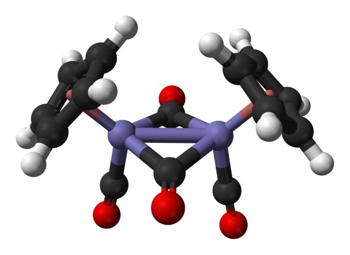 Keywords: Cis-Fp2-from-xtal-1970-3D-balls.png Ball-and-stick model of the cis isomer of the cyclopentadienyliron dicarbonyl dimer C<sub>14</sub>H<sub>10</sub>Fe<sub>2</sub>O<sub>4</sub> AKA Cp<sub>2</sub>Fe<sub>2</sub> CO <sub>4</sub> or Fp<sub>2</sub> Colour code 393939 Carbon C grey-black FFFFFF Hydrogen H white 817BC6 Iron Fe purple-grey-blue F00000 Oxygen O red Structure determined by X-ray crystallography from http //dx doi org/10 1039/J19700003068 J Chem Soc A 1970 3068-3074 Model manipulated in http //www crystalmaker com/ CrystalMaker 8 5 Image generated in http //accelrys com/products/discovery-studio/visualization/discovery-studio-visualizer html Accelrys DS Visualizer Own 2012-02-09 Ben Mills Benjah-bmm27 Images by Ben Mills Ball-and-stick models Cyclopentadienyl iron dicarbonyl dimer |