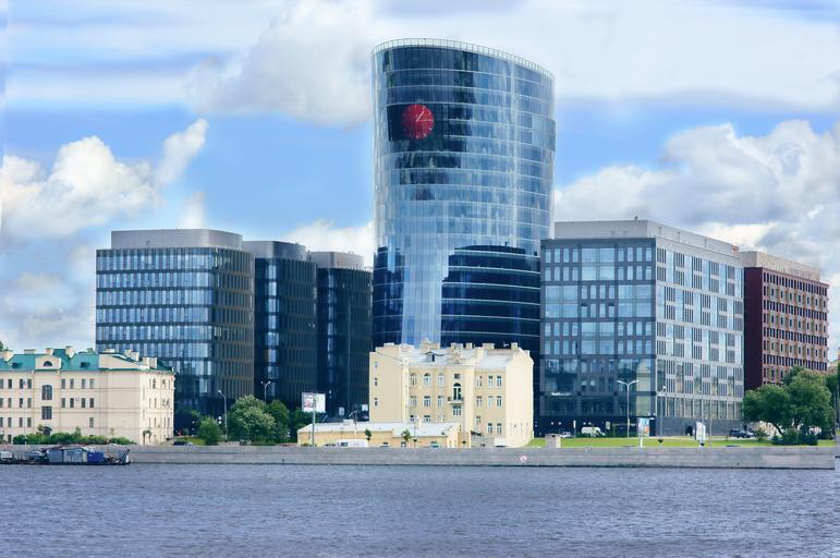 Keywords: city at home day architecture sky the façade of the st petersburg russia skyscraper building clouds glass summer
