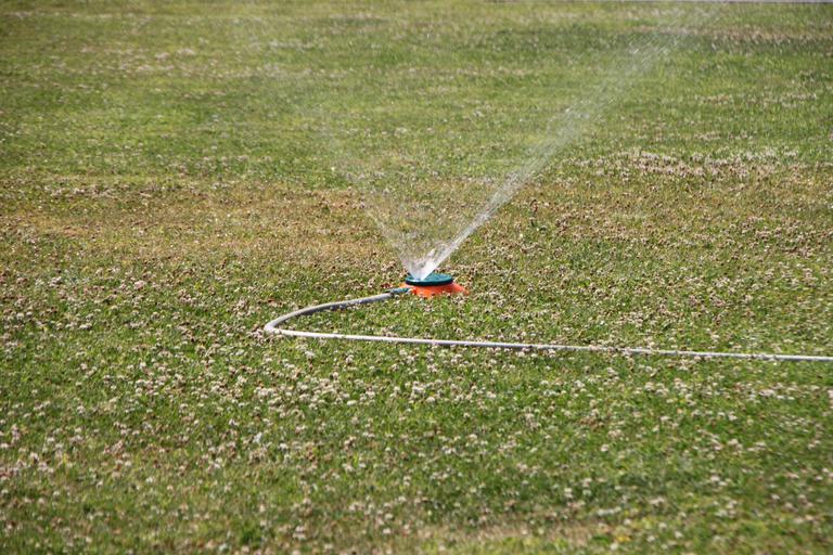 Keywords: city garden grass green heat spraying sprinkler stream swirling water summer