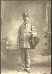Keywords: smithsonian institution smithsonianinstitution usps mailman letter carrier lettercarrier postal employee postalemployee mail delivery maildelivery 1880s studio photography studiophotography american worker americanworker black and white photograph blackandwhitephotograph national postal museum nationalpostalmuseum mail across the commons mailacrossthecommons monochrome black and white Description: An unidentified letter carrier posed in uniform for a studio photograph. Creator/Photographer: Unidentified photographer Medium: Black and white photographic print Culture: American Geography: USA Date: 1885 Collection: U.S. Postal Employees Persistent URL: arago.si.edu/index.asp?con=2&cmd=1&id=194277 Repository: National Postal Museum Accession number: A.2006-25 Description: An unidentified letter carrier posed in uniform for a studio photograph. Creator/Photographer: Unidentified photographer Medium: Black and white photographic print Culture: American Geography: USA Date: 1885 Collection: U.S. Postal Employees Persistent URL: arago.si.edu/index.asp?con=2&cmd=1&id=194277 Repository: National Postal Museum Accession number: A.2006-25 |