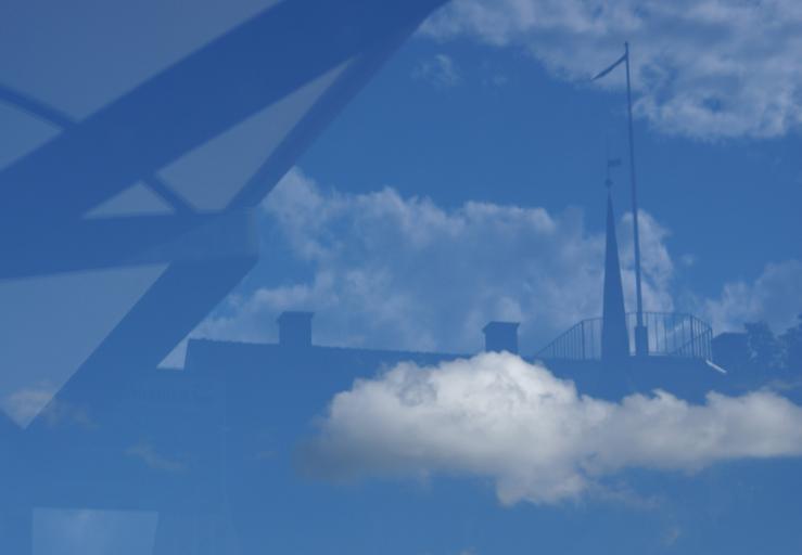 Keywords: city mirroring himmel cloud uppsala bus shelter summer sweden blue sky blue