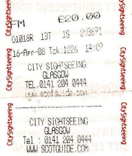 | Keywords: City Sightseeing ticket.jpg A scan of a bus ticket from en City Sightseeing Glasgow Own Scanned 10/5/08 ticket dated 16/4/08 Arriva436 Bus tickets of the United Kingdom City Sightseeing City Sightseeing Glasgow West Coast Motors bus company Images by Arriva436 |