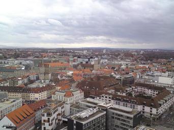 Keywords: city skyline building top sky clouds view high