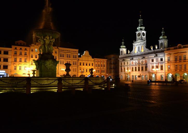 Keywords: city square fountain city center architecture south bohemia night night lights the markt evening light historical old town