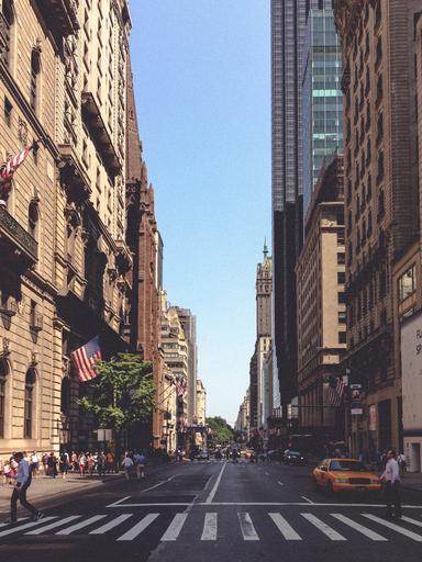 Keywords: city street urban buildings high skyscrapers canyon america usa concrete asphalt people road downtown cityscape pedestrians