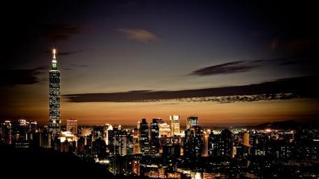 Keywords: cityscape sunset urban skyline dusk sky view downtown skyscrapers twilight scenic landscape sunset sky taipei city taiwan asia panorama illuminated lights evening