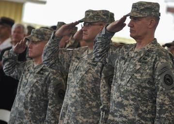 Keywords: CJTF-HOA welcomes incoming commanding general 140114-N-LE393-028.jpg en From right U S Army Gen David Rodriguez commander of U S Africa Command Maj Gen Terry Ferrell outgoing commanding general of Combined Joint Task Force-Horn of Africa CJTF-HOA and Brig Gen Wayne Grigsby Jr incoming commanding general salute during a change of command ceremony at Camp Lemonnier Djibouti Jan 14 2014 CJTF-HOA supports partner nation military operations in East Africa to defeat violent extremist organizations conducts focused military-to-military engagements and conducts crisis response and personnel recovery in support of U S military diplomatic and civilian personnel throughout East Africa U S Navy photo by Mass Communication Specialist 1st Class Eric Dietrich/Released 2014-01-14 Petty Officer 1st Class Eric Dietrich https //www dvidshub net/image/1150138 140114-N-LE393-028 2014-01-14 04 33 CAMP LEMONNIER DJ PD-USGov-Military-Navy Combined Joint Task Force - Horn of Africa Camp Lemonnier Images from DoD uploaded by Fæ Wayne W Grigsby Jr Terry R Ferrell David M Rodriguez |