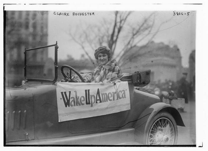 | Keywords: Claire Rochester circa 1916 on her car tour.jpg en Claire Rochester on 6 April 1917 on her car tour 2014-01-11 15 58 55 Library of Congress Bain http //www gettyimages com/detail/news-photo/actress-and-vaudeville-performer-claire-rochester-a-car-news-photo/102643790<br>http //www gettyimages com/detail/news-photo/actress-and-vaudeville-performer-claire-rochester-a-car-news-photo/102643778<br>http //www loc gov/pictures/collection/ggbain/item/ggb2005021392/<br>http //www loc gov/pictures/collection/ggbain/item/ggb2005021390/ <br>http //www loc gov/pictures/collection/ggbain/item/ggb2005021389/ Original caption Actress and vaudeville performer Claire Rochester a car enthusiast drives a Golden Flyer to raise Liberty war bonds on a driving tour from New York to San Francisco April 1917 The Wake Up America tour aimed to spur army recruitment and support of America's efforts in World War I Source Getty PD-Bain Uploaded with UploadWizard Claire Rochester |