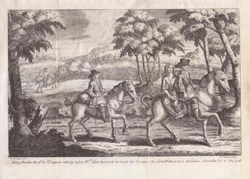 | Keywords: Clarendon's History of the Rebellion - P. La Vergne - Michael van der Gucht - Flight of Charles II - original scan.jpg LargeImage Original King Charles the 2<sup>d</sup> in Disguise rideing before M<sup>rs</sup> Lane by which he made his Escape; the Lord Wilmor at a distance Clarendon Vol 3 Pag 418 - P La Vergne inv M V<sup>dr</sup> Gucht Sculp <center>THE <big>HISTORY</big><br /> OF THE<br /> <big><i>REBELLION</i></big><br /> AND<br /> <big>C</big>IVIL <big>W</big>ARS<br /> IN <br /> <big>ENGLAND</big><br /> Begun in the Yeaar 1641 <br /> With the precedent Paſſages and Actions that contributed thereunto and the happy End and Concluſion thereof by the K<small>ING</small>'<small>S</small> bleſſed R<small>ESTORATION</small> and R<small>ETURN</small> upon the 29<sup>th</sup> of <i>May</i> in the Year 1660 <hr> <small>Written by the Right Honourable</small><br /> E<small>DWARD</small> E<small>ARL</small> of C<small>LARENDON</small> <br /> Late Lord High Chancellor of <i>England</i> Privy Counſellor in the Reigns of King C<small>HARLES</small> the Firſt and the Second <hr> κτῆμα ἐς εί <i>Thucyd </i><br /> <i>Ne quid Falſi dicere audeat ne quid Veri non audeat </i> Cicero <hr> V<small>OLUME</small> III P<small>ART</small> 2 <hr> <i>OXFORD </i><br /> Printed at the T<small>HEATER</small> <i>An Dom </i> MDCCXXXI 1731 Michael van der Gucht after P La Vergne PD-Old-100 File Clarendon's History of the Rebellion - P La Vergne - Michael van der Gucht - Flight_of_Charles_II - original scan png - Original Scan - Archival PNG File Clarendon's History of the Rebellion - P La Vergne - Michael van der Gucht - Flight_of_Charles_II - original scan jpg - Original Scan - JPG for easy viewing File Clarendon's History of the Rebellion - P La Vergne - Michael van der Gucht - Flight_of_Charles_II png - Restoration - Archival PNG File Clarendon's History of the Rebellion - P La Vergne - Michael van der Gucht - Flight_of_Charles_II jpg - Restoration - JPEG Edward Hyde 1st Earl of Clarendon Michael Vandergucht 17th-century engravings English Civil War Charles II of England in engravings |